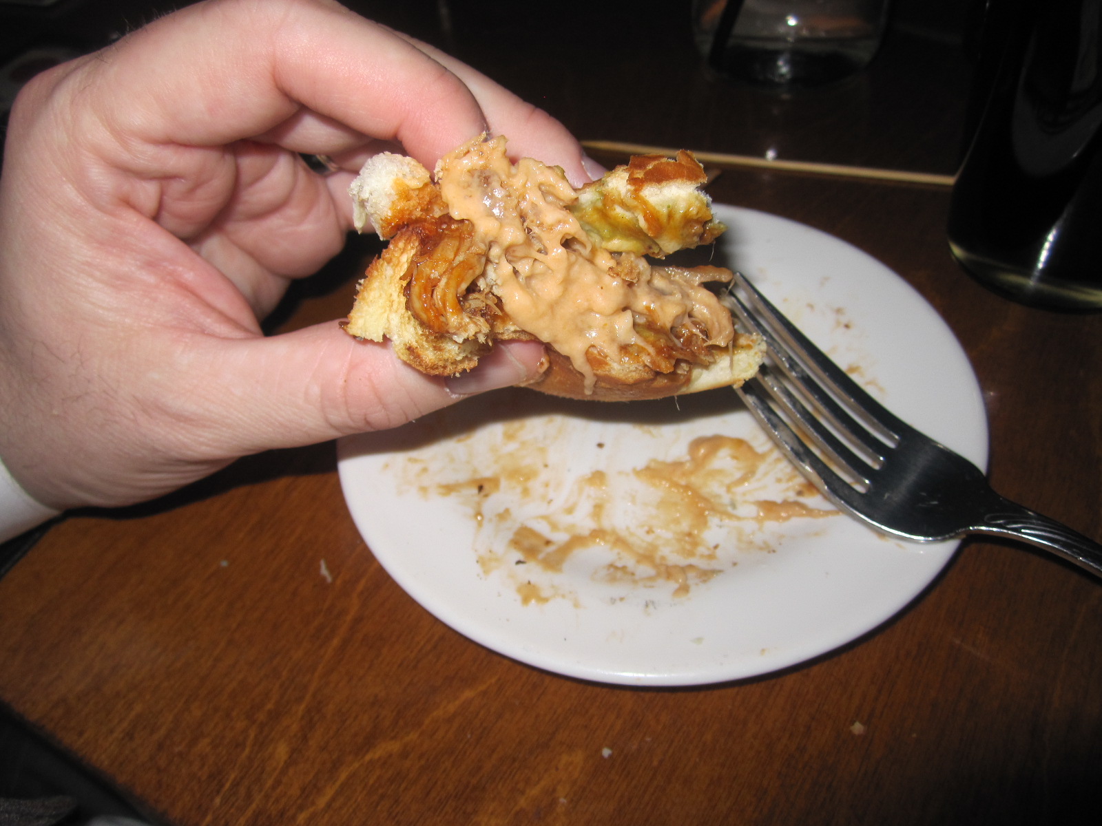 Poco offers 3 kinds of sliders; Pulled Pork, Lamb and the beef sliders (actually more of a mini-burger) with manchego cheese, avocado crema, & chorizo aioli. Unfortunately they had run out of the Lamb Sliders (grounds for a Burger Conquest return in the making!) so we got the prior 2. The soft juicy mini-burger is cooked to a perfect medium rare, which is pretty hard to do considering the size. While I love the decision to not let the spices overtake the juicy and fresh ground beef, the crema and chorizo is very slight and could use just a little more. There’s absolutely nothing even remotely chewy about the patty. The Pulled Pork sliders are sweet, smoky and delicious. In fact, the only improvement one could make would be shoving a bite of the Pulled Pork Mac and Cheese into the sandwich (that is an order, not a suggestion.)